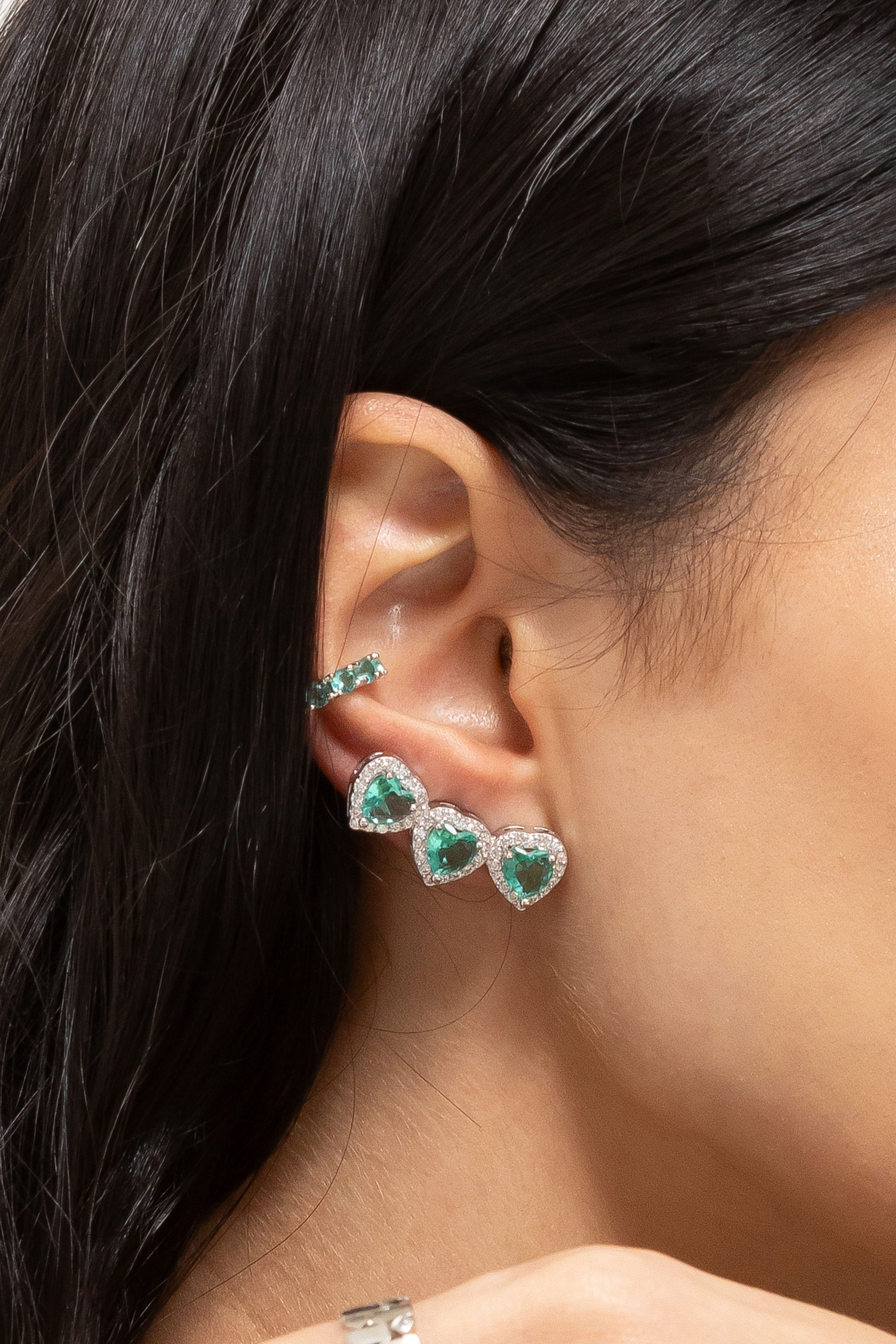 Mini Heartbeat adds a lively pulse of sparkle to your ear game. Featuring three shimmering heart-shaped stones lined up in a playful rhythm, these studs are perfect for stacking or wearing solo when you want just a hint of shine.