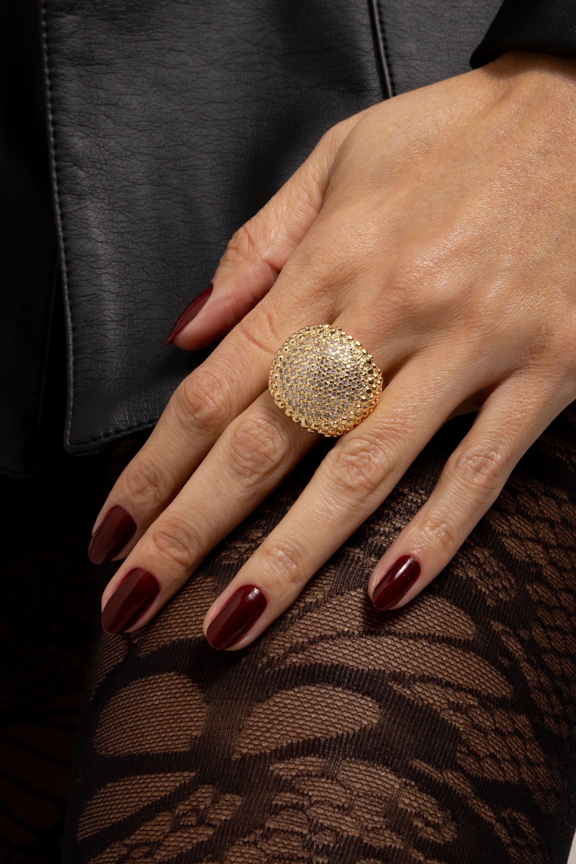 A versatile accessory that transforms any scarf into a statement. Crafted in 18K gold plating with intricate textured detailing, this bold piece doubles as both a functional scarf holder and a striking fashion accent. Whether styled on your neck or slipped on your finger as a cocktail ring, it’s the definition of luxe versatility.