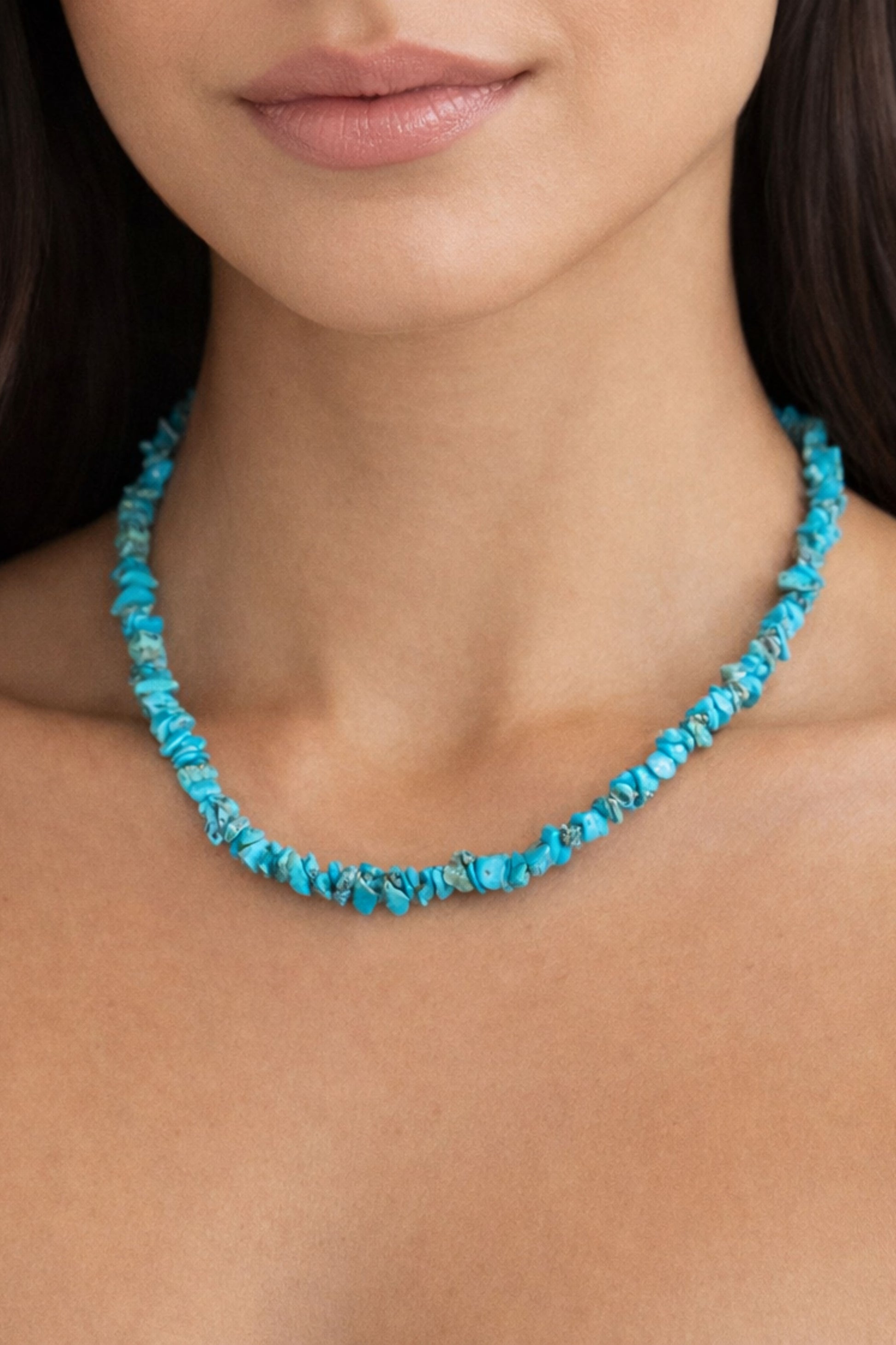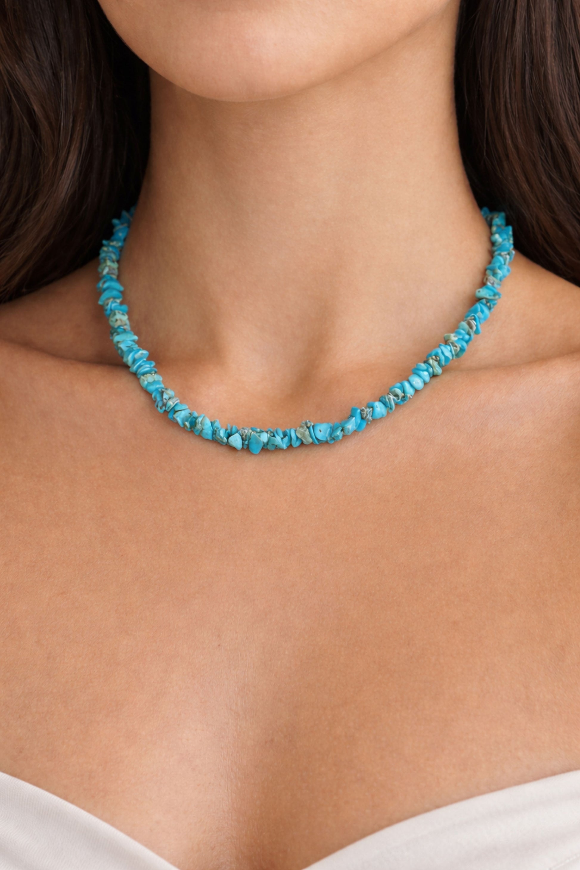 A playful splash of turquoise stones, each one unique and full of character. Easy to wear and perfect for layering or making a soft statement on its own. Lightweight, colorful, and ready to brighten up any look.