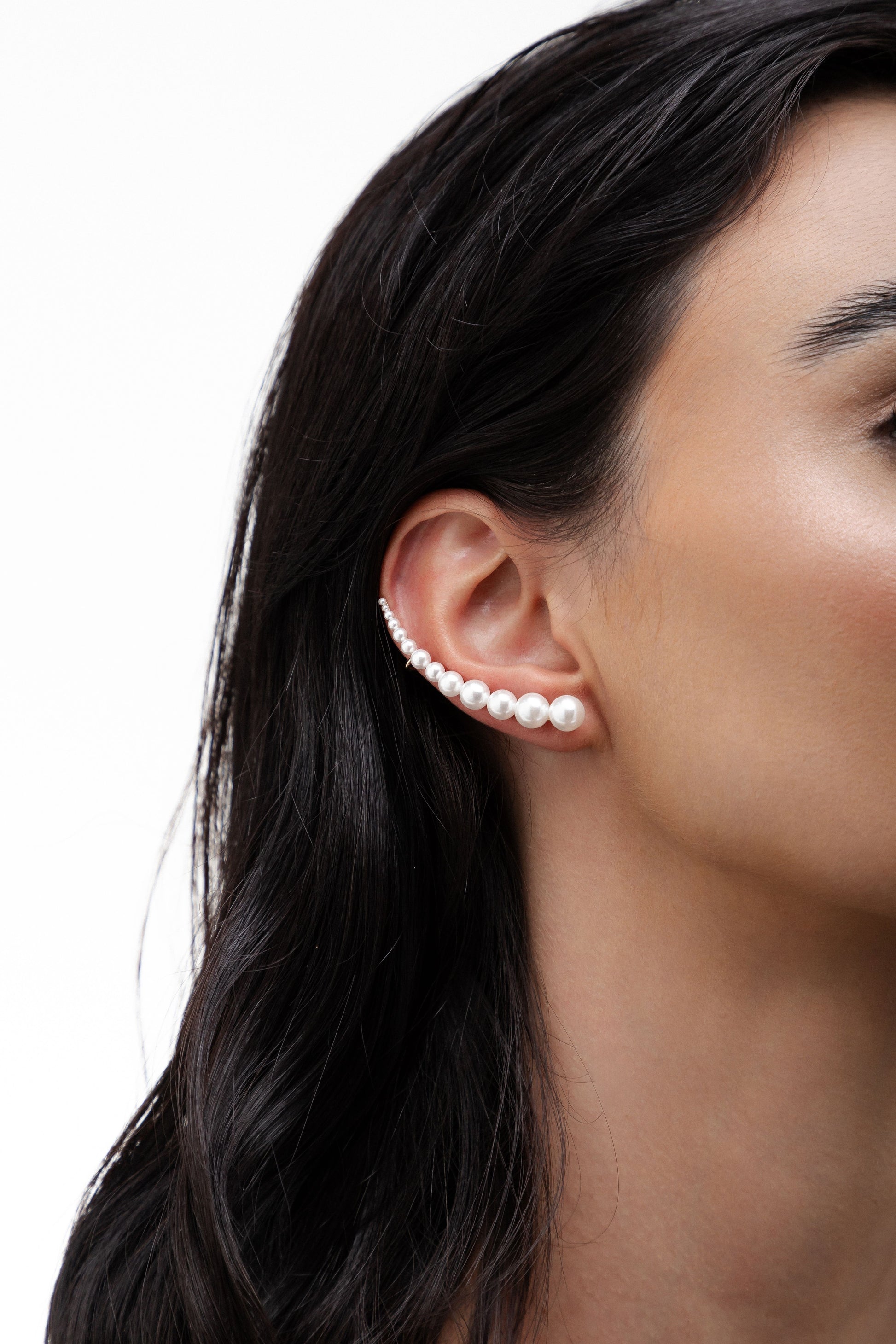 A sleek ear climber that lines your ear with luminous pearls in a modern, elevated design. Minimal yet statement-worthy, it’s the perfect mix of timeless grace and bold edge.