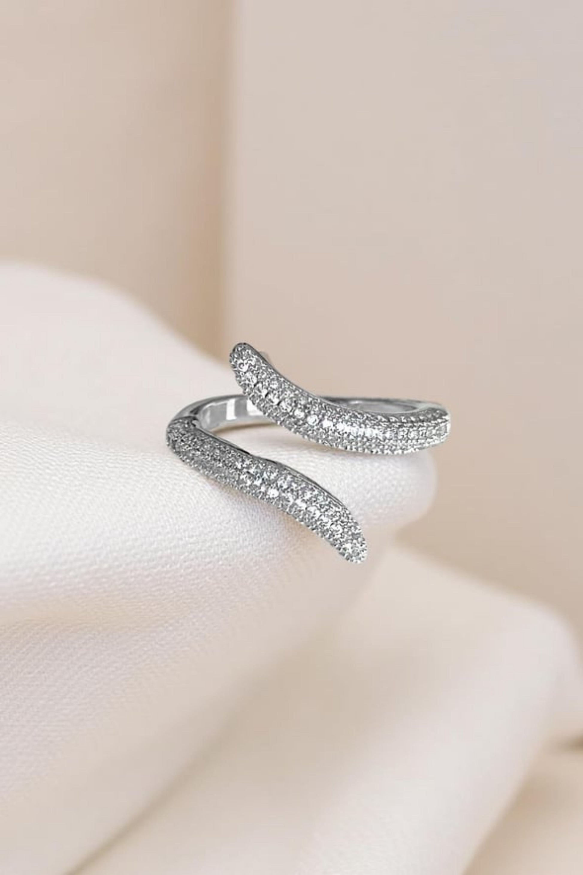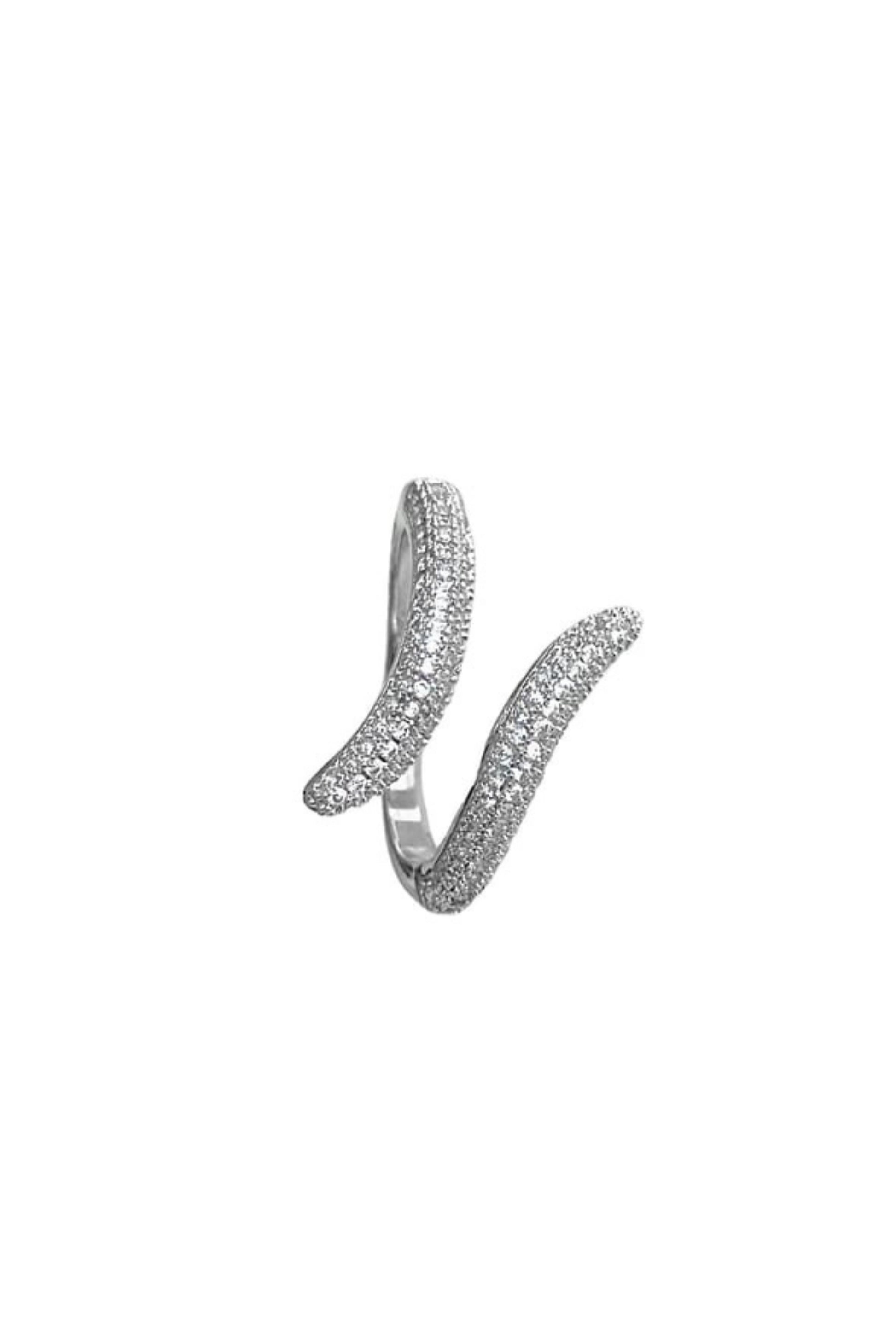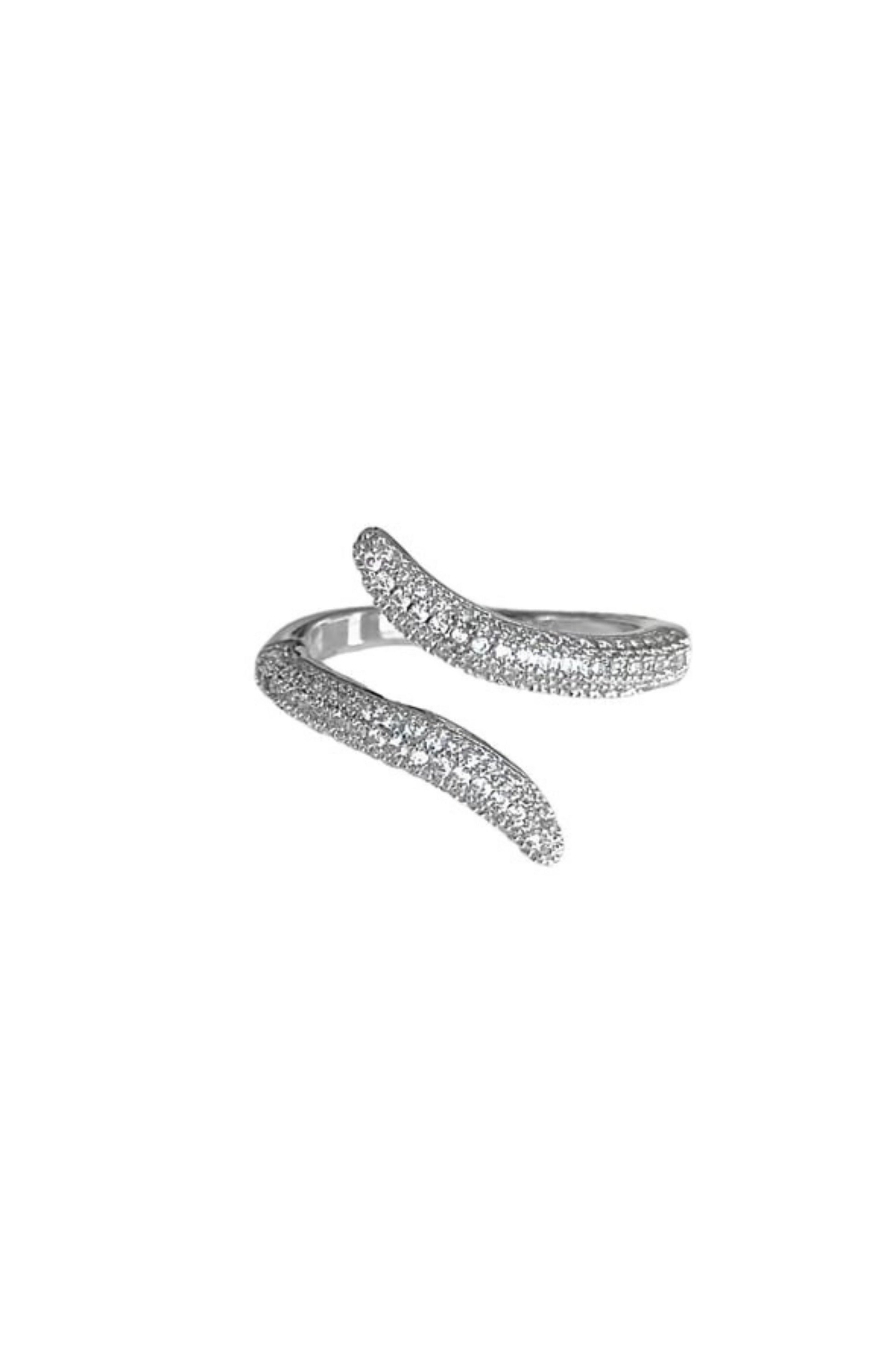 A sleek wraparound ring that coils gracefully around your finger. Finished in a shimmering pavé of zircon crystals, its serpent-inspired curves embody power, elegance, and just the right touch of mystery.