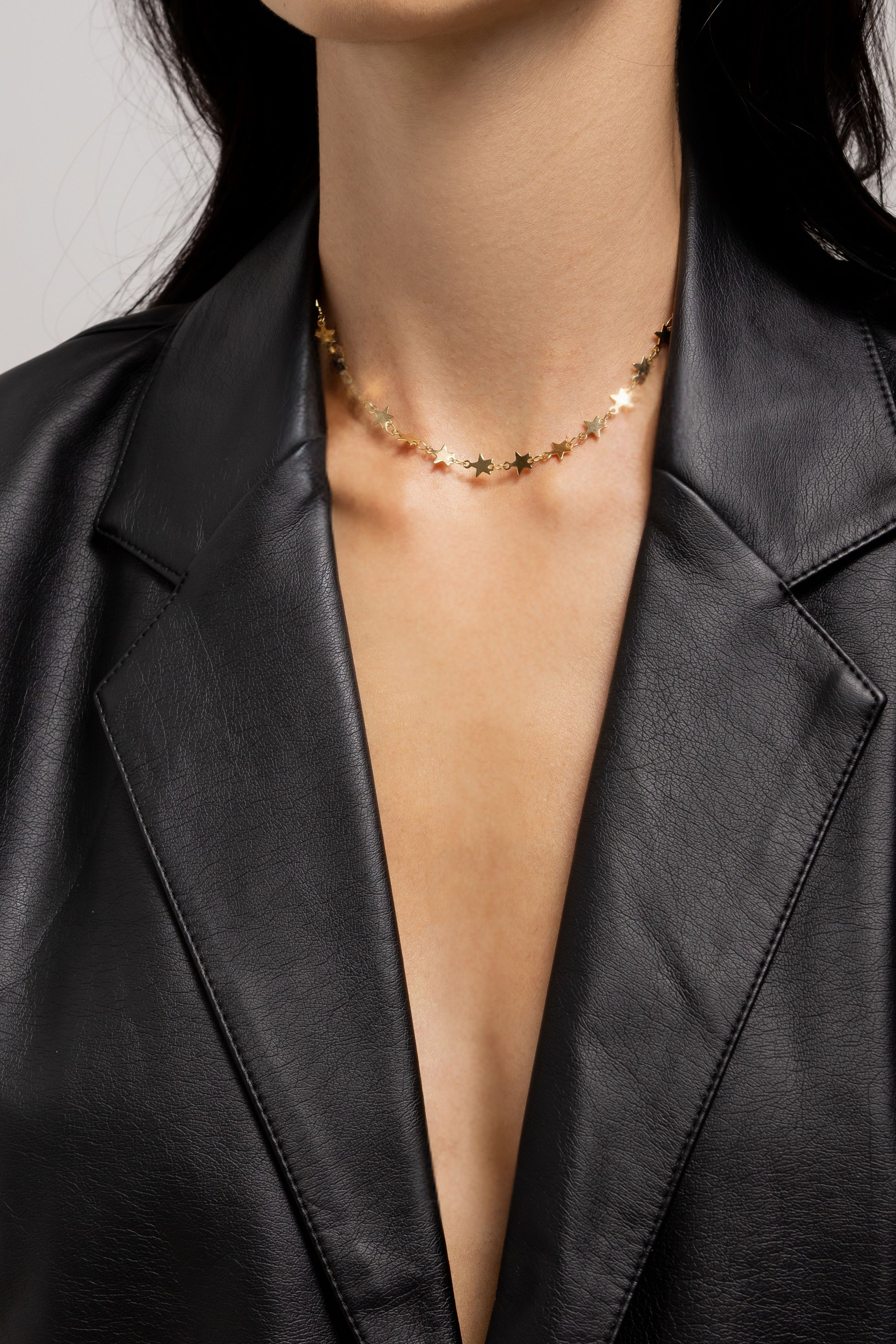 A choker-style necklace crafted with a lineup of edgy gold-plated star charms. Sleek, playful, and a little rebellious, it brings just the right dose of cosmic attitude to your neckline.